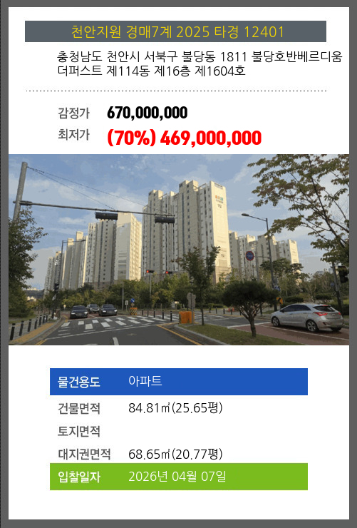 본건은 충청남도 천안시 서북구 불당동 1811 불당호반베르디움더퍼스트 제114동 제16층 제1604호