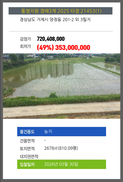 거제농지경매 거제시 양정동 201-2 외 3필지 №2025 타경 21453(1)