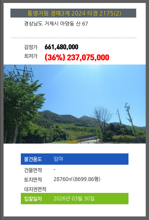 거제임야경매 거제시 아양동 산 67 №2024 타경 2175(2)