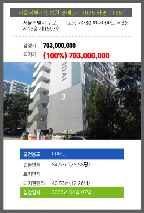 본건은 서울특별시 구로구 구로동 74-30 현대아파트 제3동 제15층 제1507호