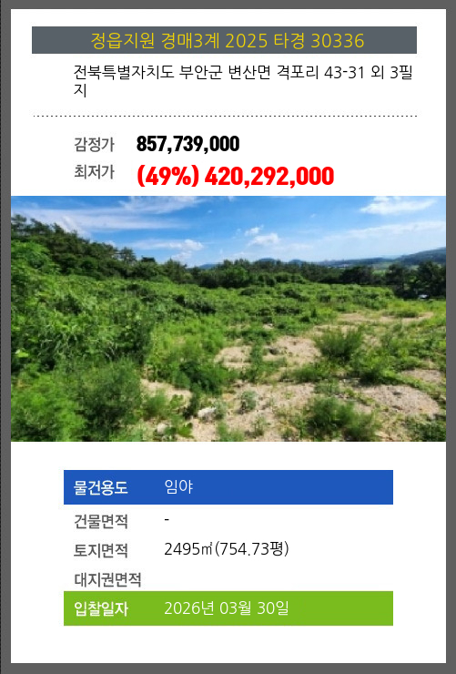 부안임야경매 부안군 변산면 격포리 43-31 외 3필지 №2025 타경 30336