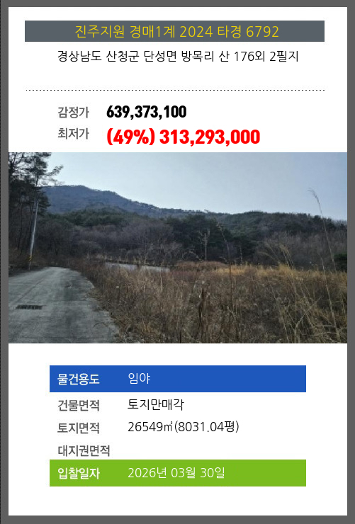 본건은 경상남도 산청군 단성면 방목리 산 176외 2필지