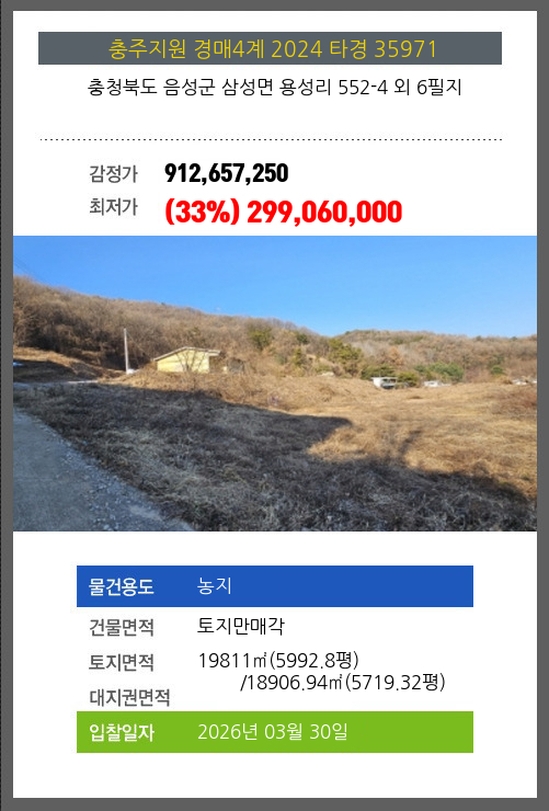 본건은 충청북도 음성군 삼성면 용성리 552-4 외 6필지
