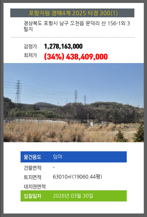 본건은 경상북도 포항시 남구 오천읍 문덕리 산 156-1외 3필지