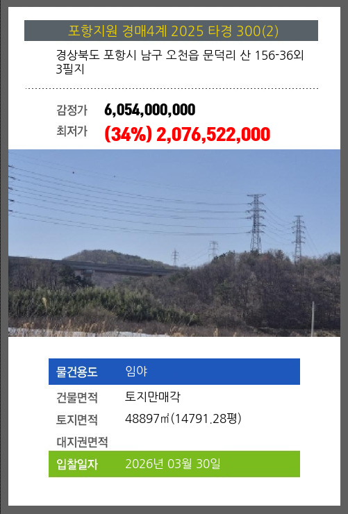 | 소재지 | [지번] 경상북도 포항시 남구 오천읍 문덕리 산 156-36외 3필지 | ||||