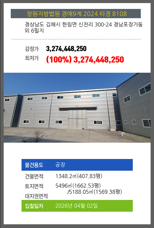 김해공장경매 김해시 한림면 신천리 300-24 경남포장가동외 6필지 №2024 타경 8108