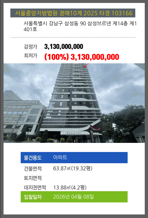 본건은 서울특별시 강남구 삼성동 90 삼성브르넨 제14층 제1401호