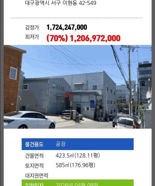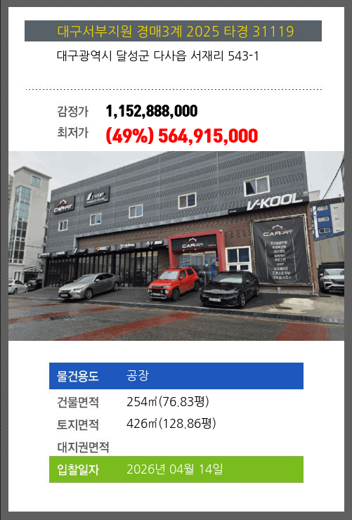 달성공장경매 달성군 다사읍 서재리 543-1 №2025 타경 31119