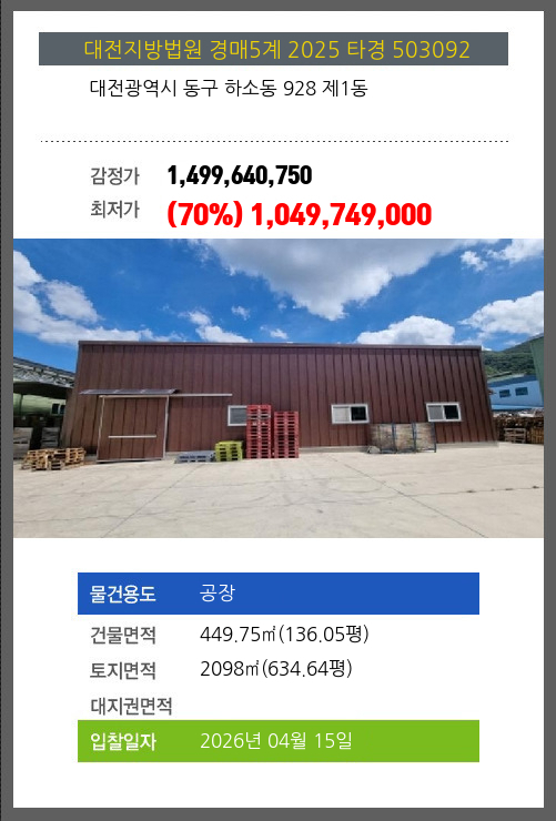동공장경매 동구 하소동 928 제1동 №2025 타경 503092