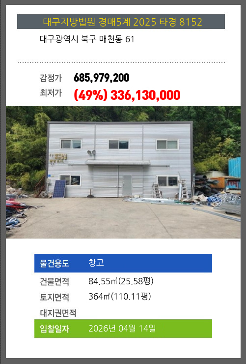 본건은 대구광역시 북구 매천동 61