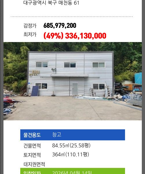소재하는 창고경매 물건의 포스팅입니다.