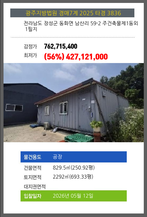 본건은 전라남도 장성군 동화면 남산리 59-2 주건축물제1동외 1필지