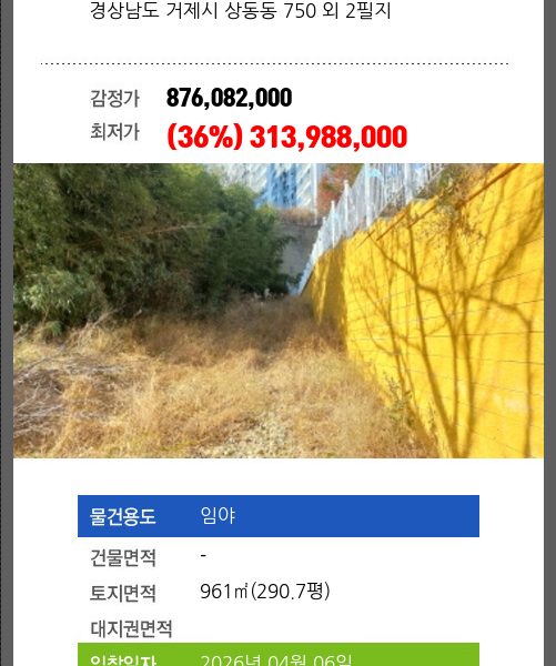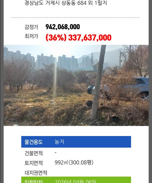 | 신건 | 2026-01-12 | 1,566,493,600 | 유찰 |
