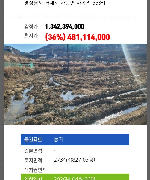 소재지 [지번] 경상남도 거제시 상동동 750 외 2필지