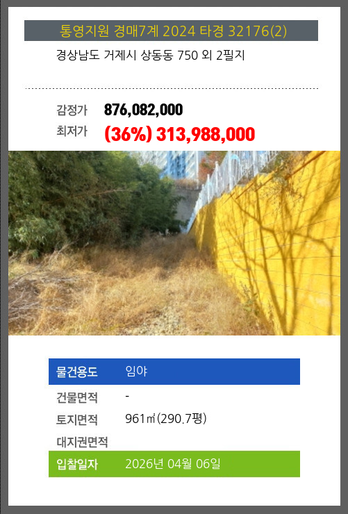 거제임야경매 거제시 상동동 750 외 2필지 №2024 타경 32176(2)
