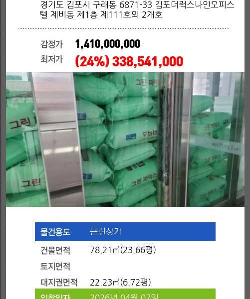 본건은 경기 김포시 장기동 1917-1, 5층503호 (장기동,석권에듀프라자)외 1개호
