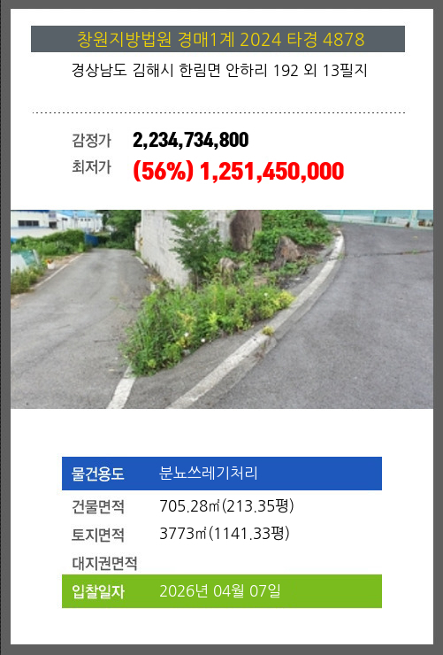소재하는 분뇨쓰레기처리경매 물건의 포스팅입니다.