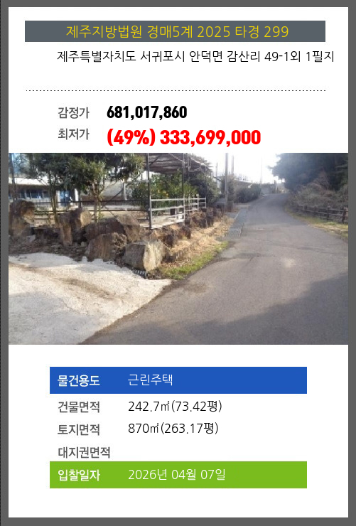 본건은 제주특별자치도 서귀포시 안덕면 감산리 49-1외 1필지