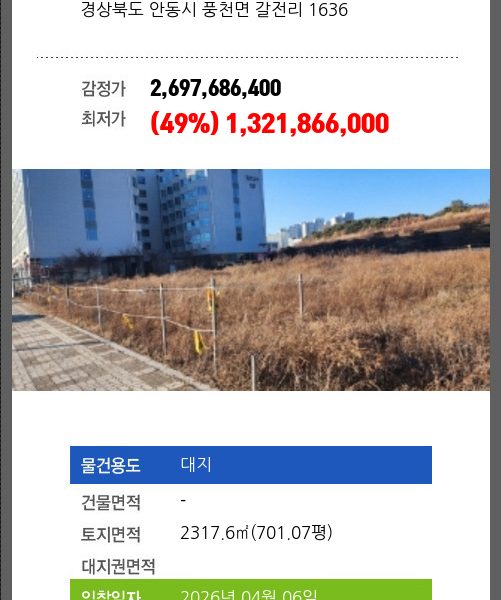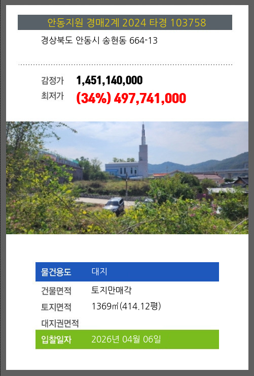 안동대지경매 안동시 송현동 664-13 №2024 타경 103758