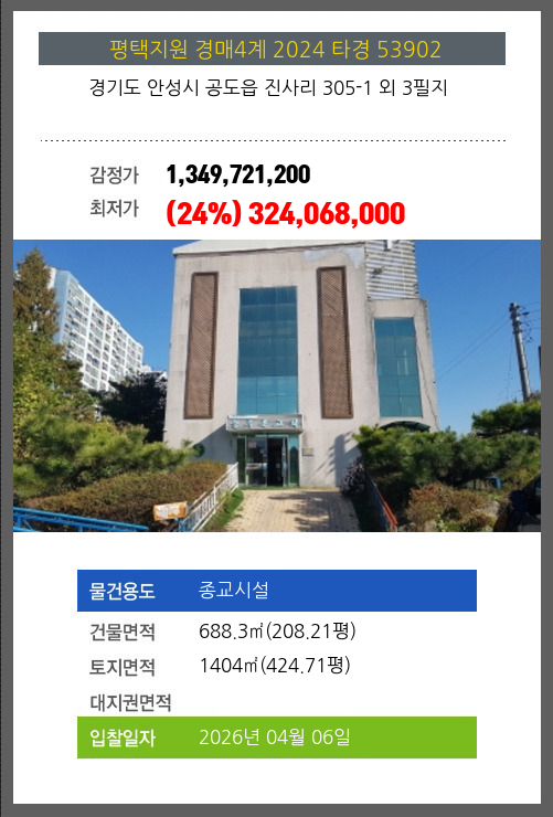 소재하는 종교시설경매 물건의 포스팅입니다.
