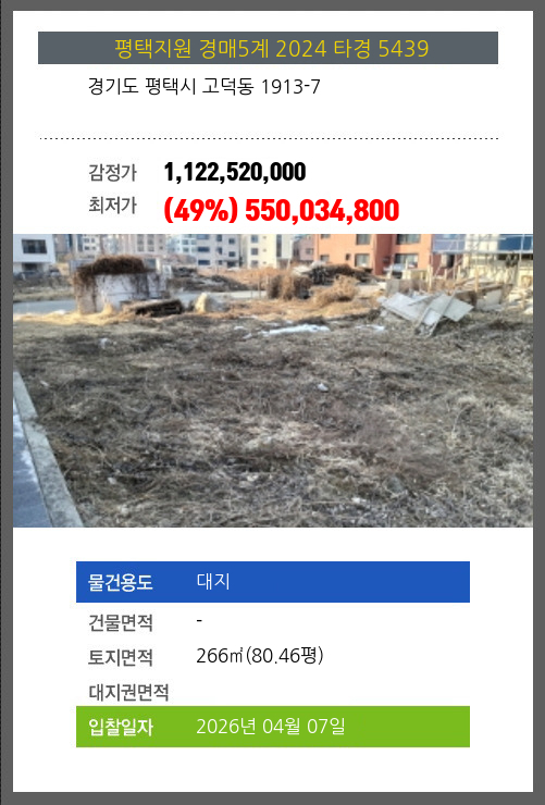 평택대지경매 평택시 고덕동 1913-7 №2024 타경 5439
