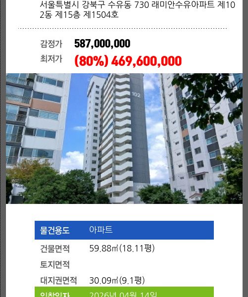 | 신건 | 2026-03-31 | 580,000,000 | 유찰 |