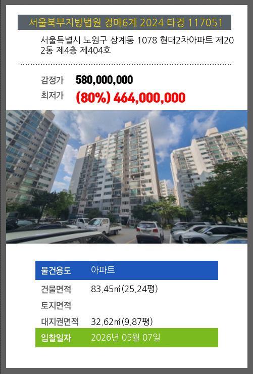 본건은 서울특별시 노원구 상계동 1078 현대2차아파트 제202동 제4층 제404호