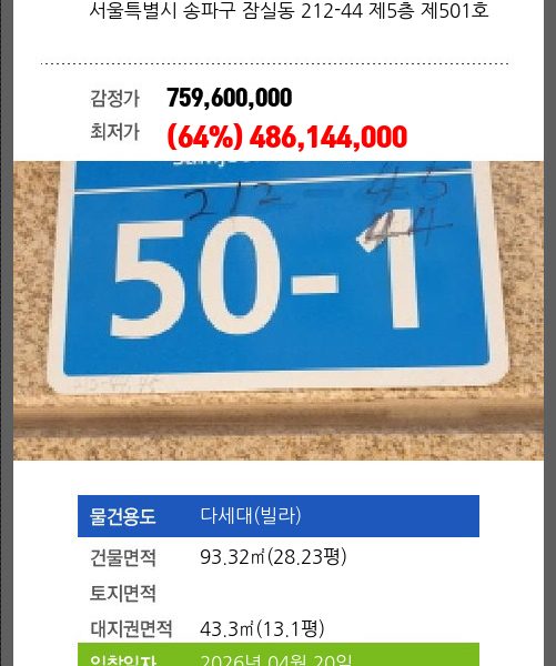 건물면적 29.82㎡ (9.02평) 채무자 서** 최저가 (80%) 418,400,000