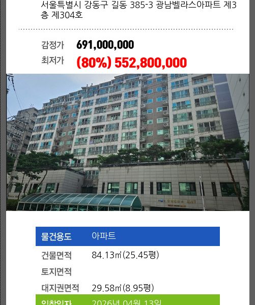 | 2차 | 2026-03-16 | 607,680,000 | 유찰 |