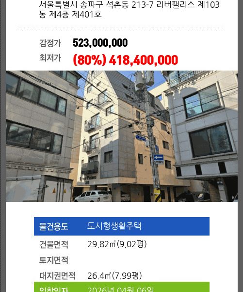 | 신건 | 2026-01-26 | 759,600,000 | 유찰 |