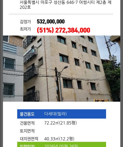 매각대상 공시가격3~4억 경매종류 임의경매 사건접수일 2024-12-03