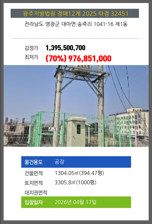 영광공장경매 영광군 대마면 송죽리 1041-16 제1동 №2025 타경 32451