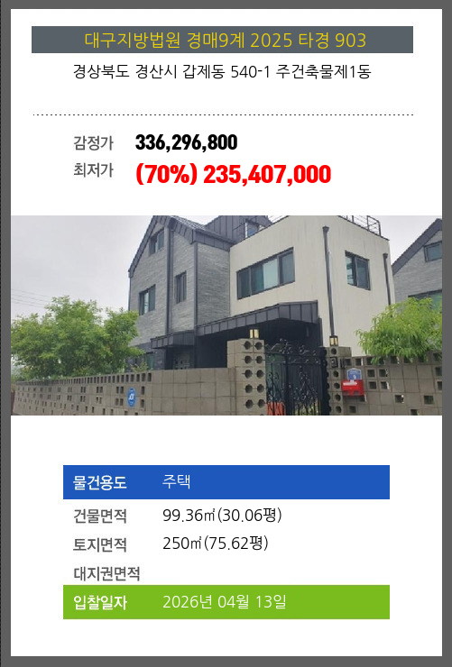 경산주택경매 경산시 갑제동 540-1 주건축물제1동 №2025 타경 903