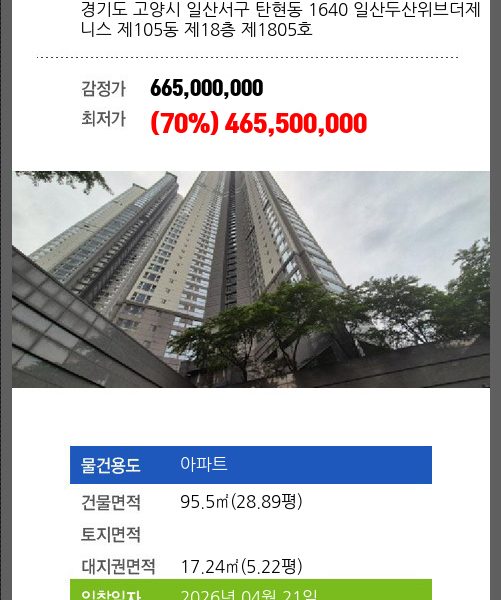 본건은 경기도 고양시 덕양구 화정동 965-1 한화꿈에그린 제16층 제1602호