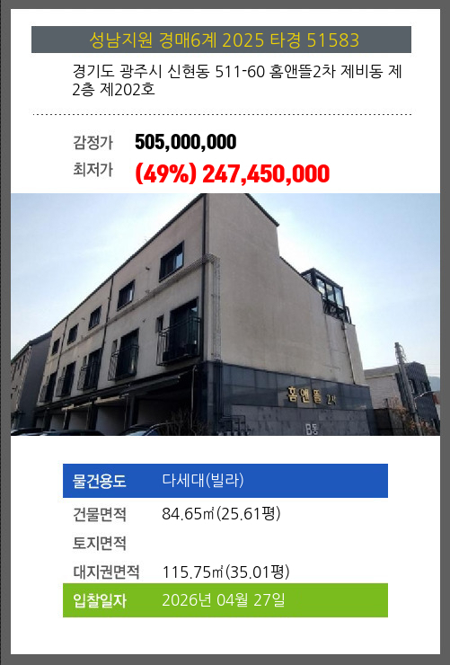 광주빌라경매 광주시 신현동 511-60 홈앤뜰2차 제비동 제2층 제202호 №2025 타경 51583