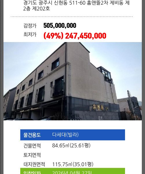 매각대상 공시가격2~3억 경매종류 임의경매 사건접수일 2025-06-18