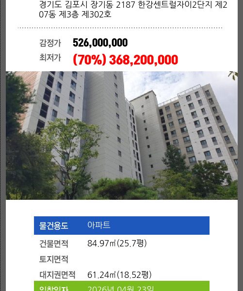소재하는 아파트경매 물건의 포스팅입니다.