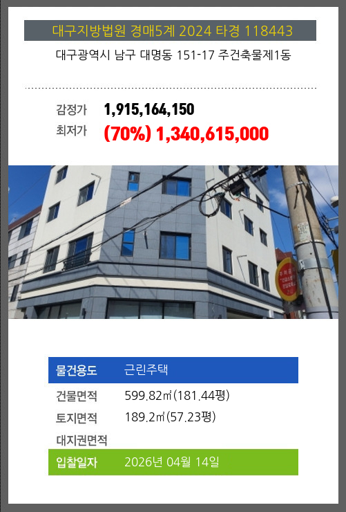 본건은 대구광역시 남구 대명동 151-17 주건축물제1동