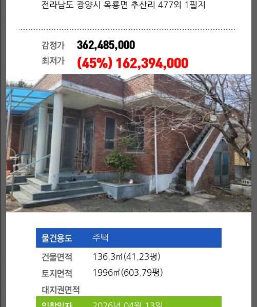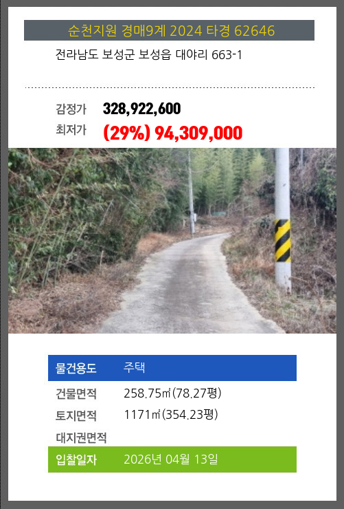 보성주택경매 보성군 보성읍 대야리 663-1 №2024 타경 62646