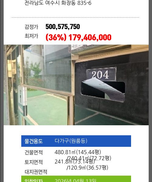 건물면적 258.75㎡ (78.27평) 채무자 정** 최저가 (29%) 94,309,000