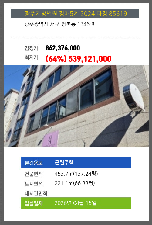 본건은 광주광역시 서구 쌍촌동 1346-8