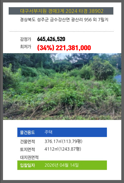 본건은 경상북도 성주군 금수강산면 광산리 956 외 7필지