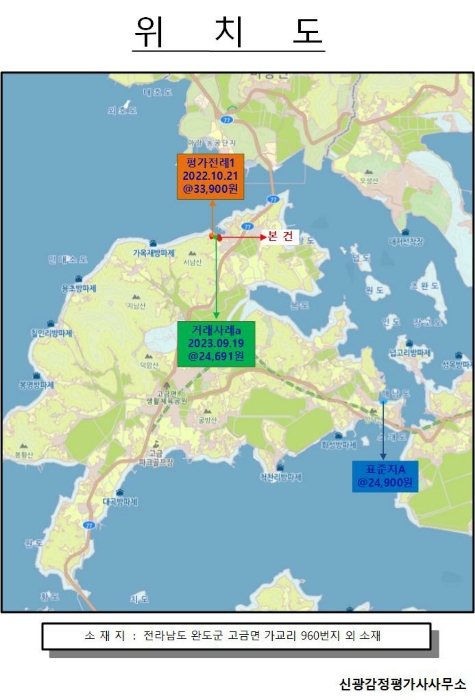 본건은 전라남도 완도군 고금면 가교리 960 외 4필지