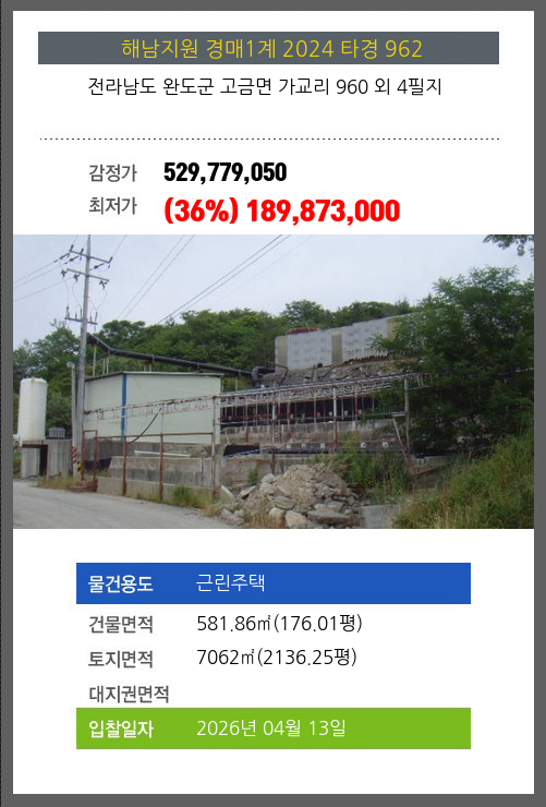 본건은 전라남도 완도군 고금면 가교리 960 외 4필지