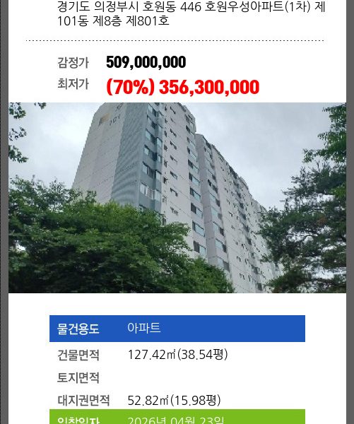 매각대상 공시가격3~4억 경매종류 임의경매 사건접수일 2025-12-16