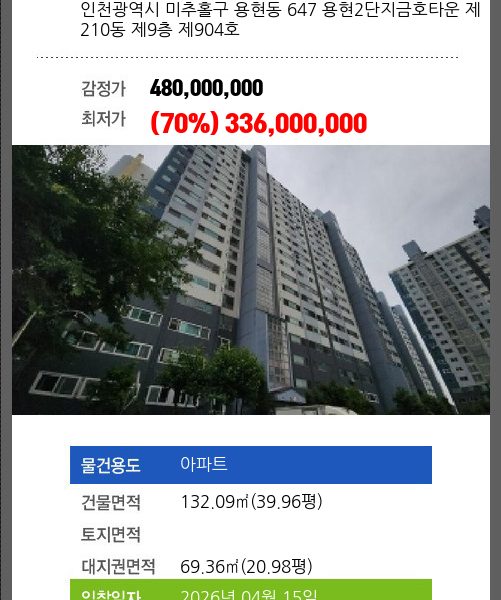 | 신건 | 2026-03-13 | 539,000,000 | 유찰 |