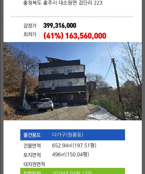 | 신건 | 2026-01-19 | 315,257,600 | 유찰 |
