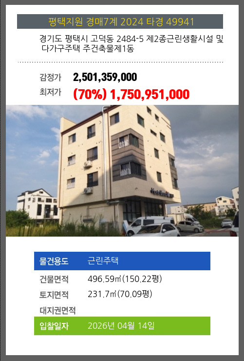 본건은 경기도 평택시 고덕동 2484-5 제2종근린생활시설 및 다가구주택 주건축물제1동