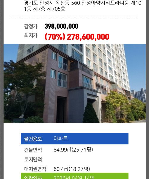 1회 유찰되어 감정가 대비 70%