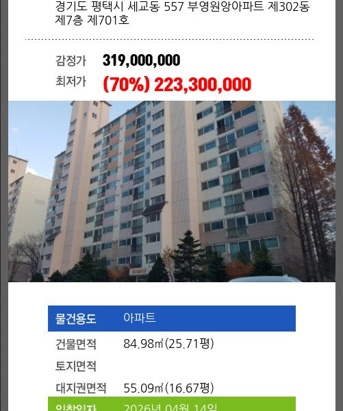 | 신건 | 2026-03-17 | 2,501,359,000 | 유찰 |